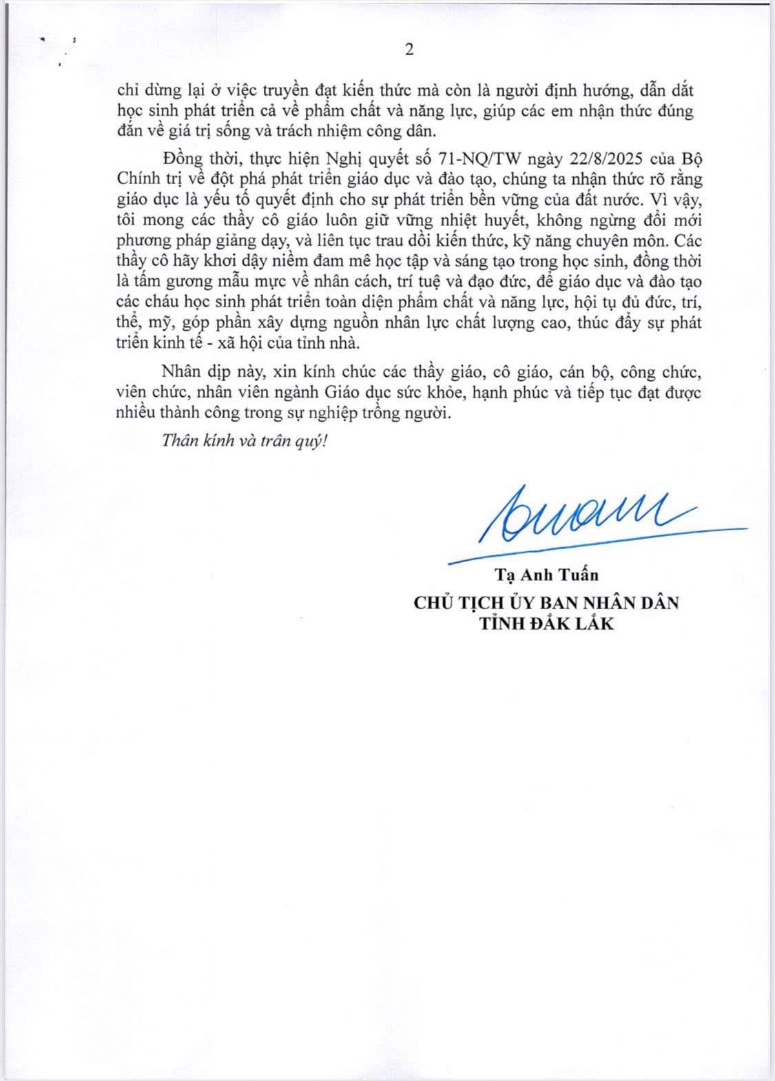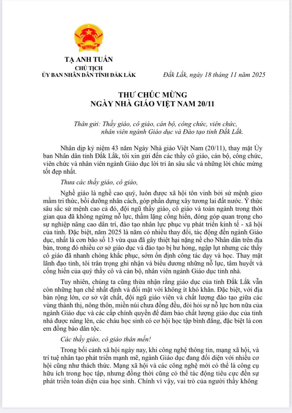 THƯ CHÚC MỪNG NGÀY NHÀ GIÁO VIỆT NAM 20/11