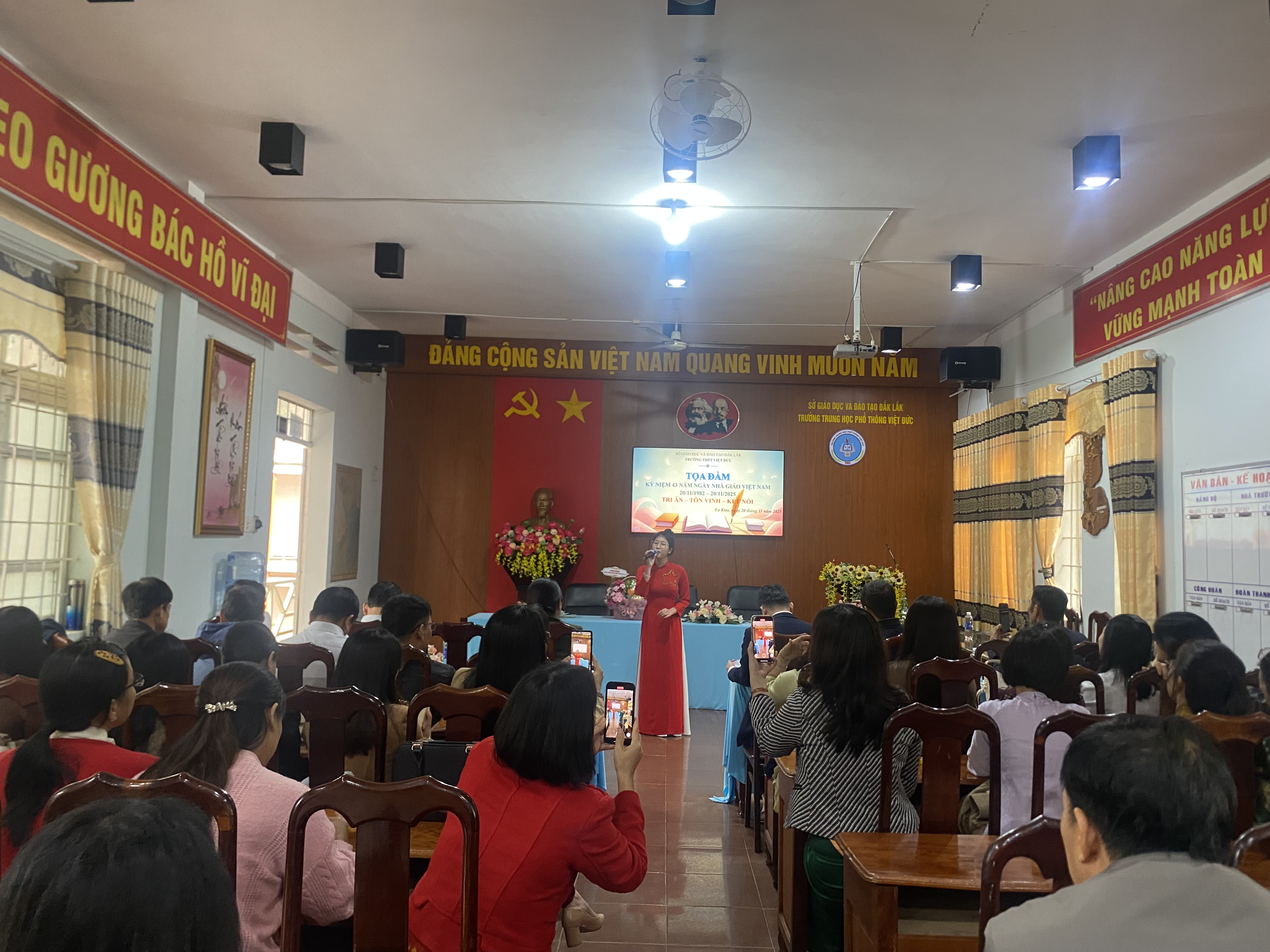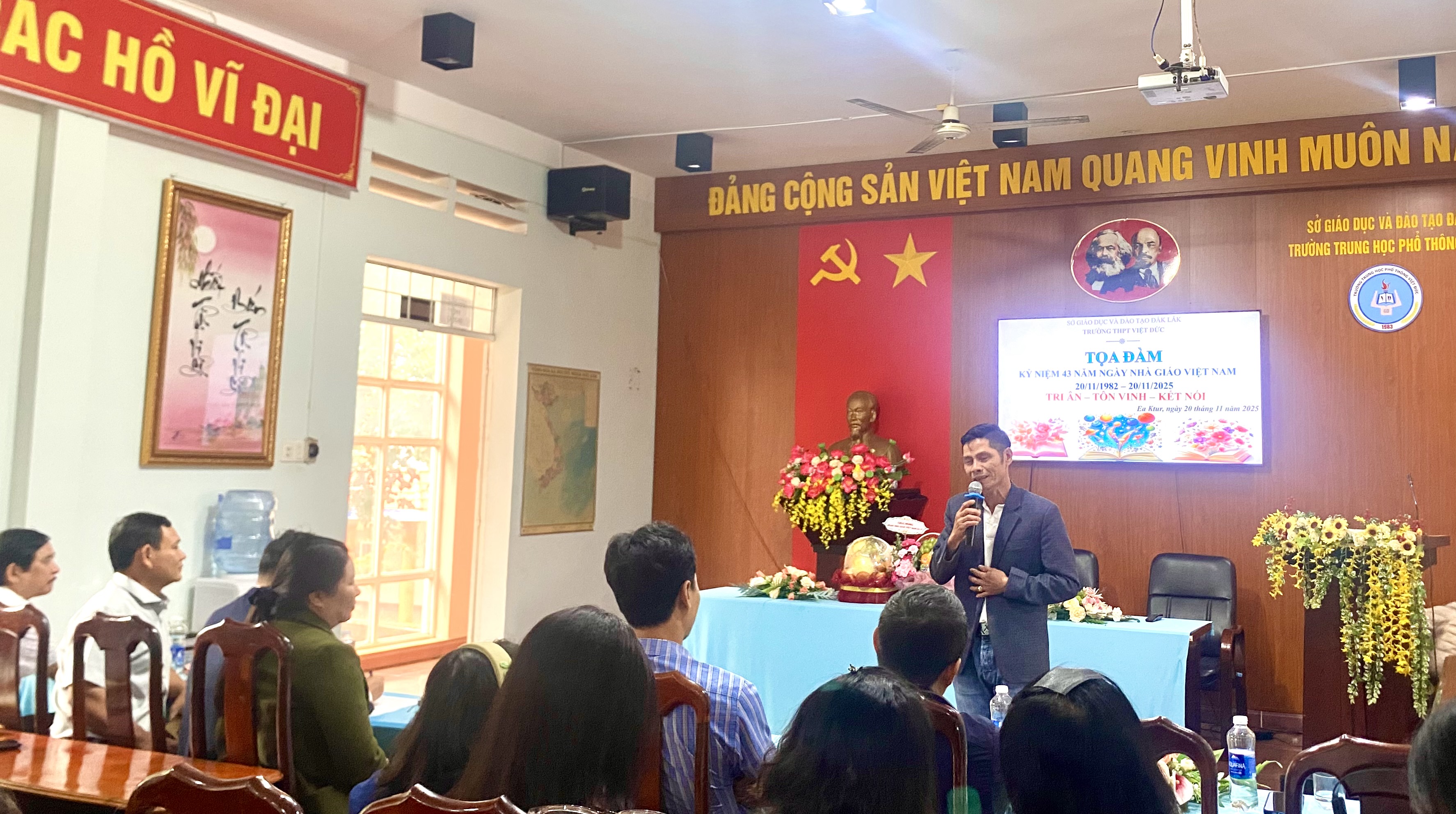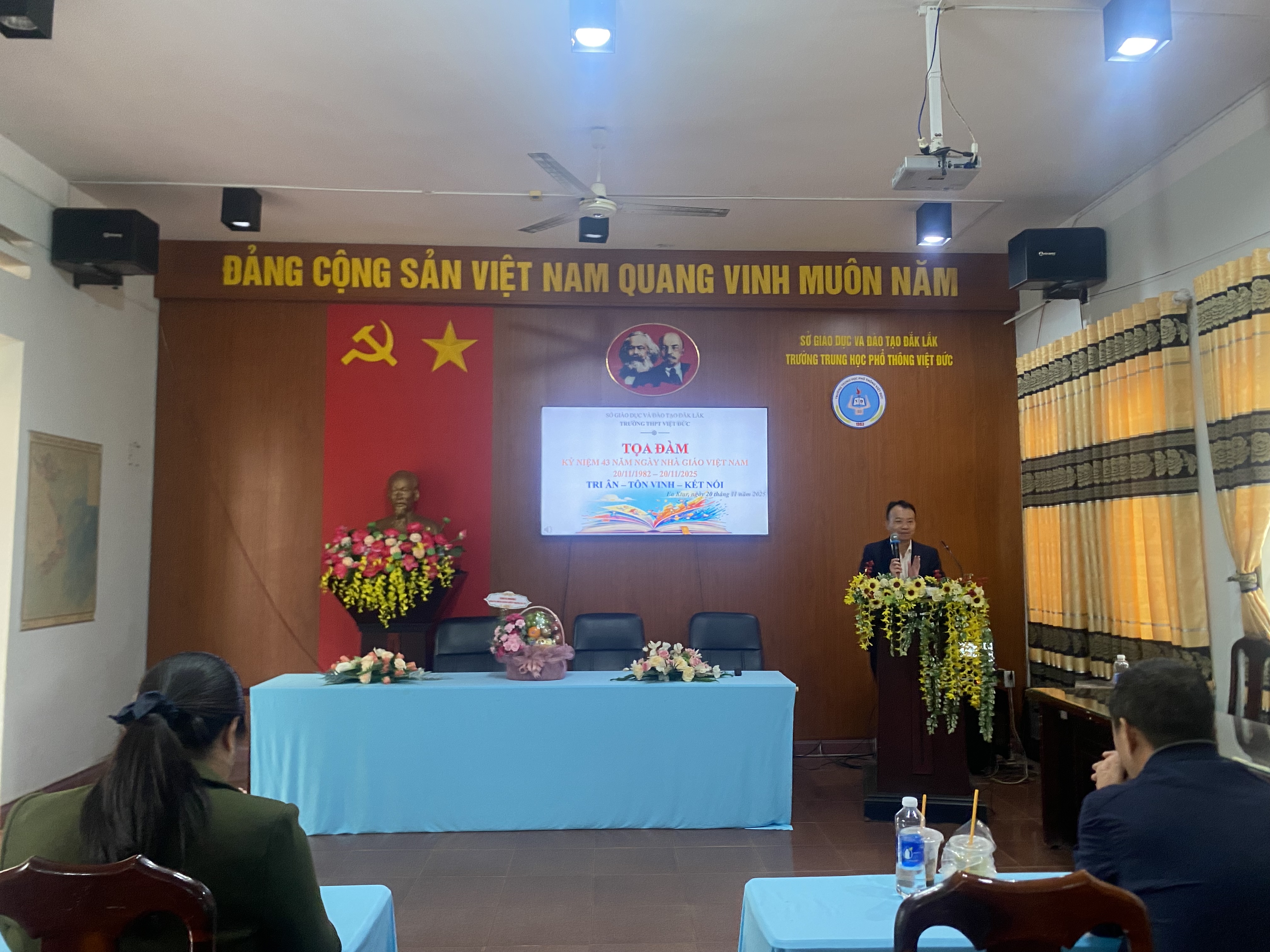 Sáng 20/11/2025, Trường THPT Việt Đức tổ chức trang trọng lễ toạ đàm kỷ niệm 43 năm Ngày Nhà giáo Việt Nam 20/11. Tại buổi lễ tôn vinh những đóng góp của các thầy cô giáo trong sự nghiệp trồng người và ghi nhận công lao và sự hy sinh của các thầy cô giáo.