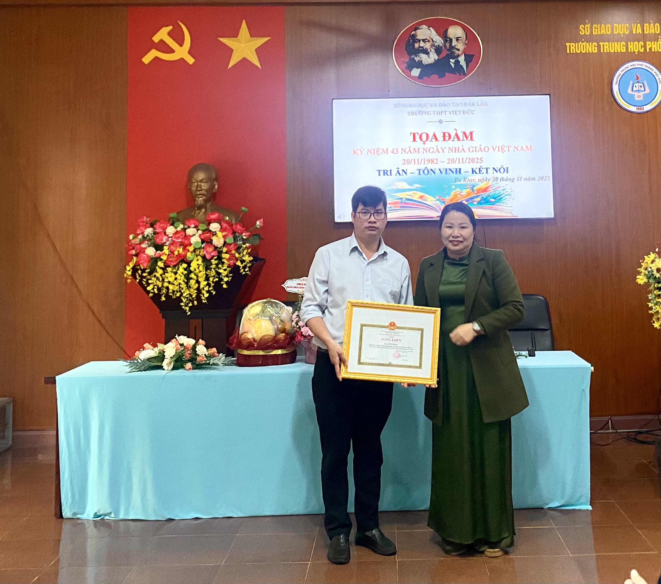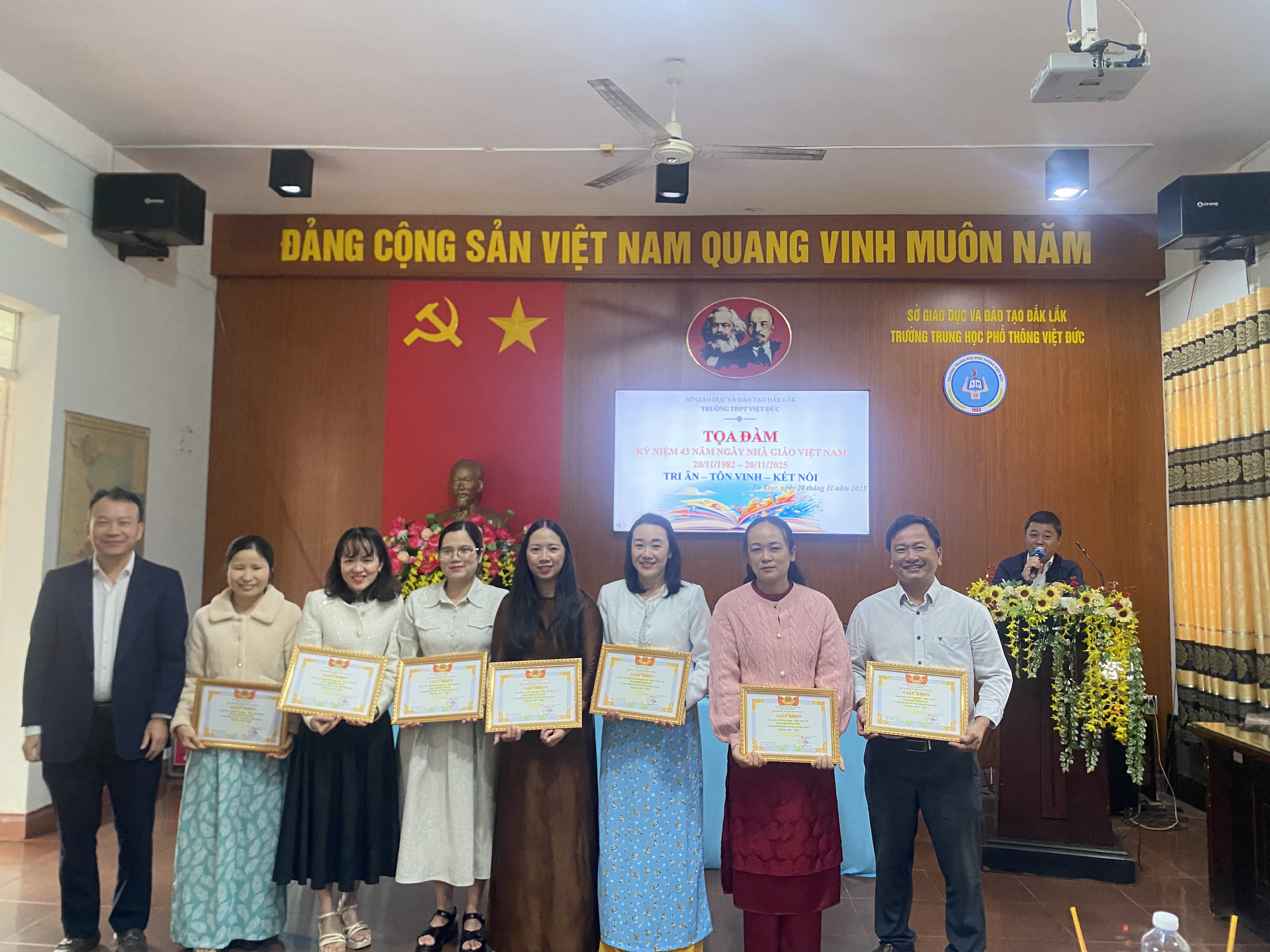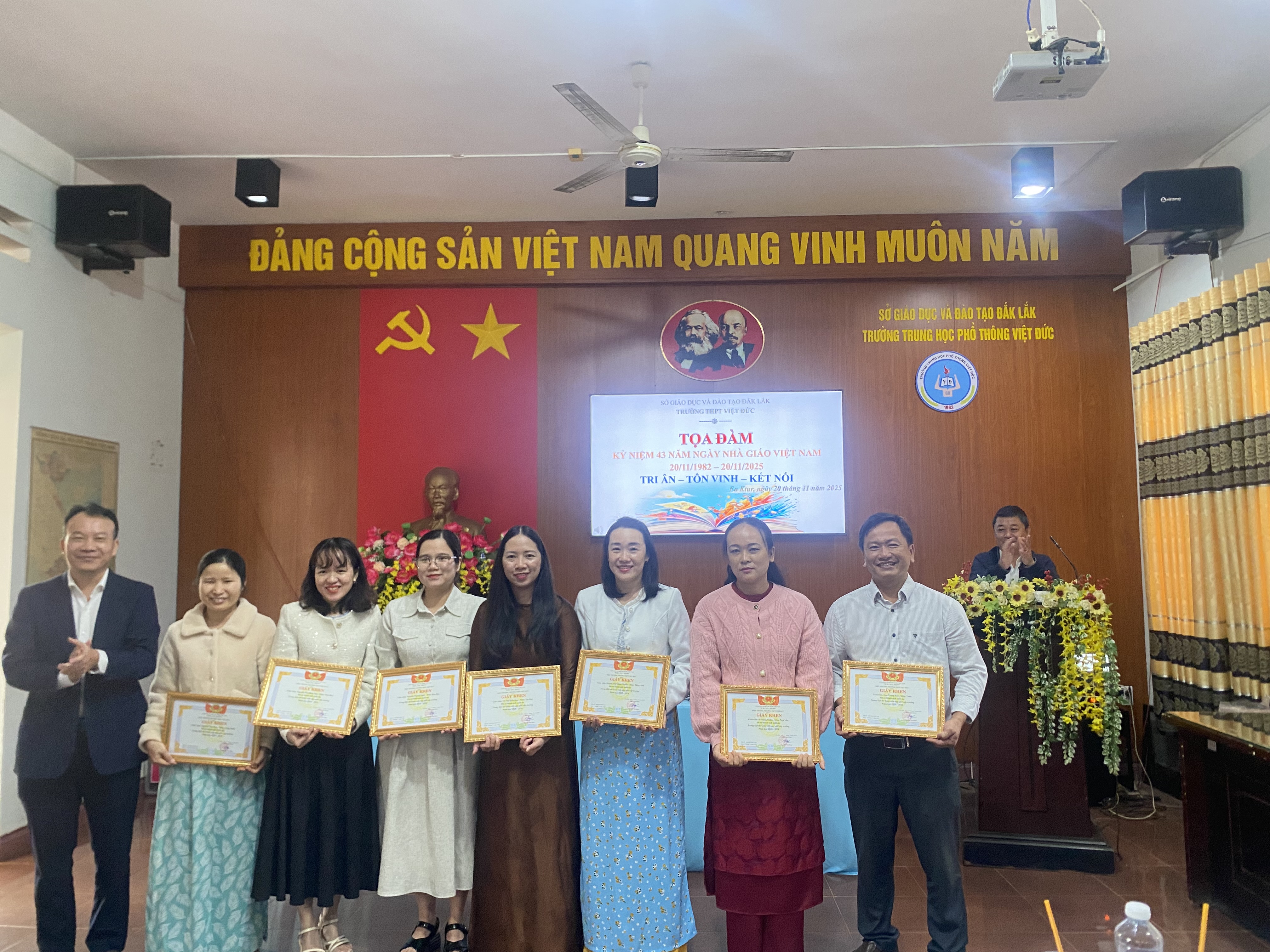 Sáng 20/11/2025, Trường THPT Việt Đức tổ chức trang trọng lễ toạ đàm kỷ niệm 43 năm Ngày Nhà giáo Việt Nam 20/11. Tại buổi lễ tôn vinh những đóng góp của các thầy cô giáo trong sự nghiệp trồng người và ghi nhận công lao và sự hy sinh của các thầy cô giáo.